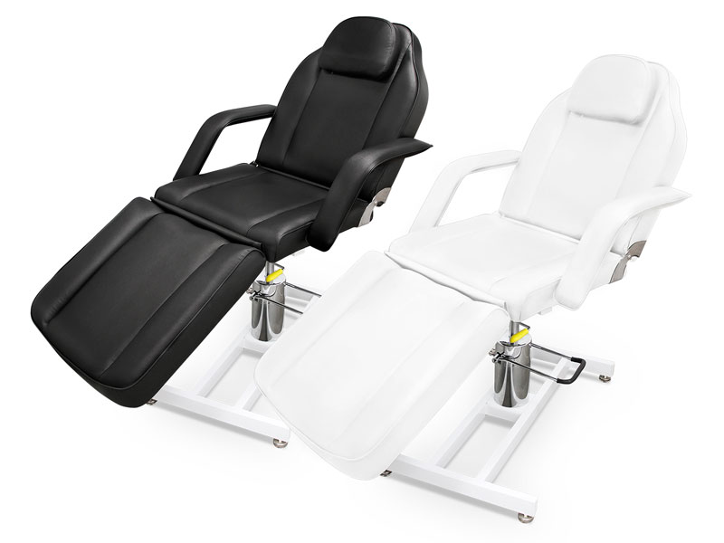 Hydraulic armchair with multiple configurable elements that has 3 bodies and highly resistant and durable upholstery. Backrest, legrest and seat height adjustable by hydraulics. Steel structure. 360º swivel.