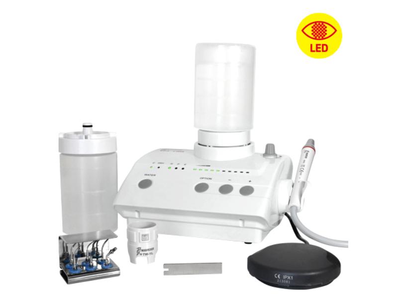 Ablatore piezoelettrico UDS-E LED Woodpecker, con serbatoio integrato e compatibilità EMS, ideale per trattamenti dentali altamente precisi e pratici.