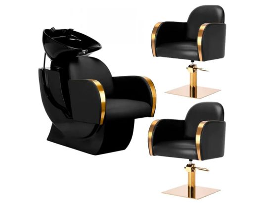 Arredamento Parrucchiere con Lavatesta e 2 Poltrone Nero e Oro