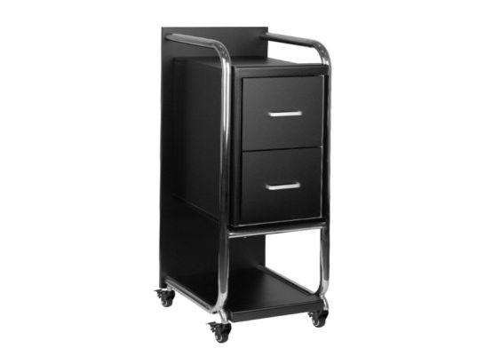 Carrello professionale Gabbiano Solo argento-nero con ruote, design elegante e funzionale per organizzare al meglio strumenti e prodotti nei saloni di bellezza.
