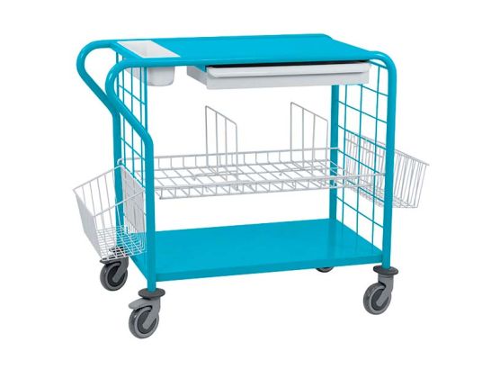 Il nostro carrello fasciatoio, progettato per 15-20 pazienti, snellisce e facilita il lavoro degli assistenti infermieristici. L'ergonomia e la modularità degli elementi portaoggetti permettono di adattare il carrello alle esigenze di ogni reparto.