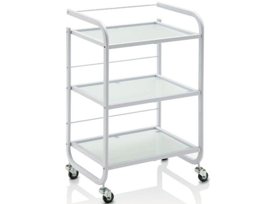 Carrello Estetica Professionale Bianco con Ripiani in Vetro e Rotelle
