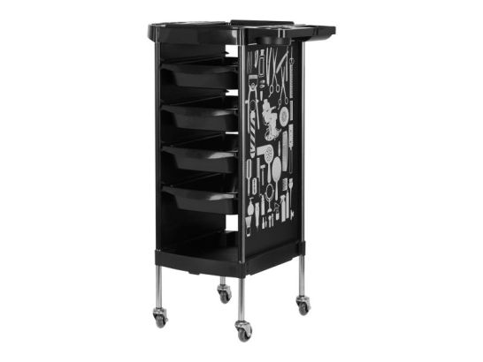 Il Carrello Parrucchiere Gabbiano X11-9 è il complemento ideale per ogni salone di bellezza che desidera unire funzionalità, design e robustezza. Realizzato con materiali di alta qualità come l'ABS resistente e un telaio in acciaio verniciato, questo carrello garantisce stabilità e durata nel tempo anche in ambienti di lavoro intensi. La combinazione di una struttura nera elegante con una grafica bianca moderna lo rende un elemento d'arredo versatile che si integra perfettamente in qualsiasi ambiente professionale, conferendo un tocco di stile e professionalità al tuo spazio di lavoro. La sua progettazione intelligente ha previsto uno spazio interno ben organizzato e un ampio vano contenitivo, senza sacrificare la maneggevolezza e la mobilità, grazie alle ruote in gomma di alta qualità dotate di cuscinetti a sfera che permettono un movimento fluido e silenzioso. Questo carrello è pensato per facilitare il lavoro quotidiano del parrucchiere, mantenendo a portata di mano tutti gli strumenti necessari per una perfetta performance professionale.