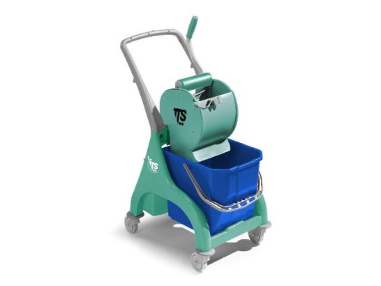 Carrello professionale 25lt con strizzatore Dry verde, pratico e robusto, ideale per pulizie efficienti in spazi piccoli e medi. Design elegante e manovrabilità ottimale.