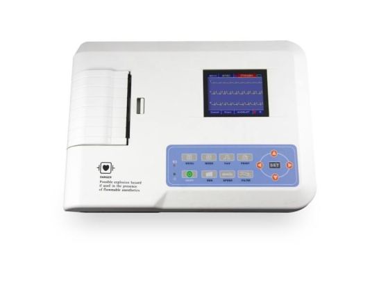 Elettrocardiografo portatile ECG300G a 3 canali, ideale per emergenze. Analisi simultanea di 12 derivazioni e stampa termica per risultati rapidi e precisi.