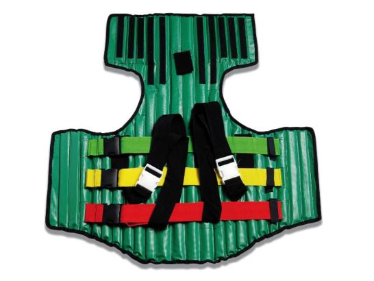 Estrinsecatore Spinale SED per immobilizzazione sicura di infortunati. Cinture multicolore e sacca di trasporto inclusa. Ideale per emergenze e operazioni di soccorso.