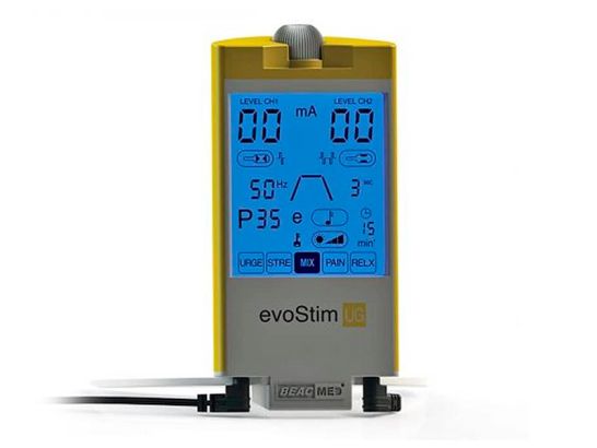 EVOSTIM-UG è un dispositivo terapeutico a due canali destinato alla rieducazione perineale mediante elettrostimolazione.