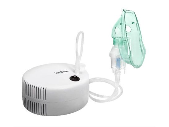 Innoliving INN-011, Aerosol a Pistone con Nebulizzazione Efficiente, Pressione fino a 2,5 Bar, Flusso 6-9 l/min, Ampolla da 6 cm³, Completo di Maschere per Adulti, Boccaglio e Filtro, Alimentazione 230V