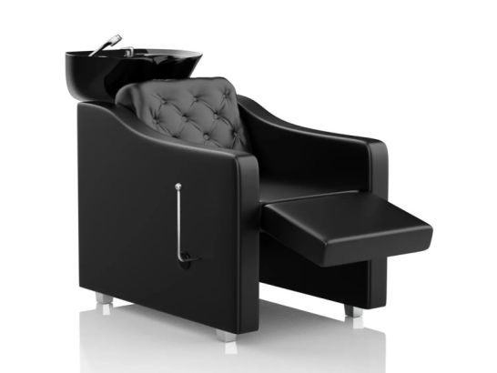 Lavaggio Parrucchiere Nero con Poltrona Trapuntata e Alzagambe Chester