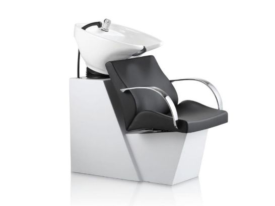 Lavatesta Professionale con braccioli cromati, design elegante e comfort superiore. Vasca basculante per un'esperienza di lavaggio impeccabile. Perfetto per saloni di bellezza!