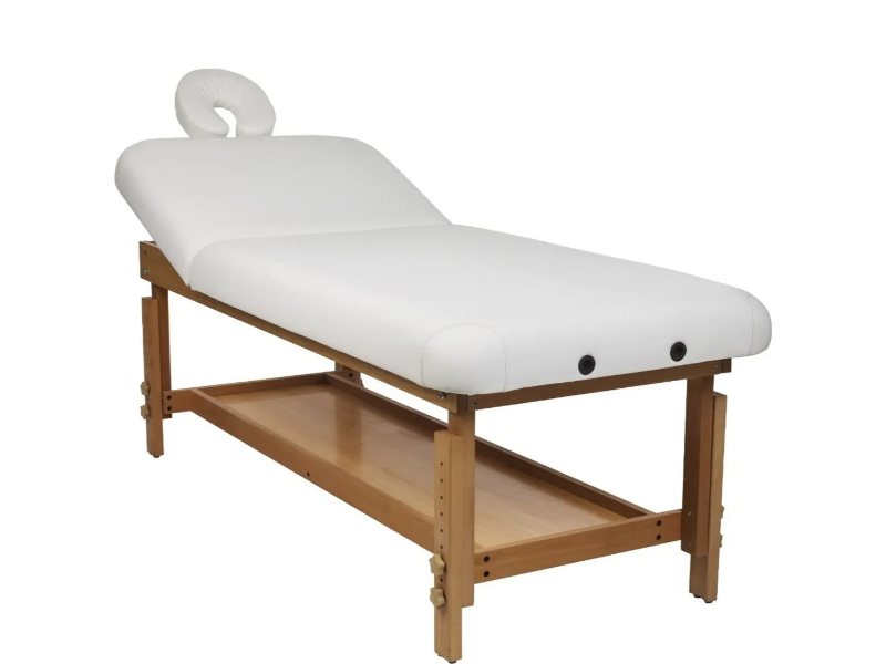 Lettino massaggio in legno robusto e regolabile, ideale per professionisti del benessere che cercano comfort, stabilità e design ergonomico per trattamenti efficaci.