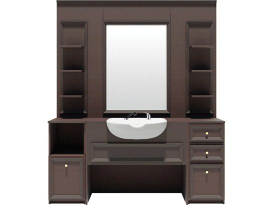 Mobile Barbiere Professionale Wengé con lavandino, doccetta, specchio e ampio spazio per organizzare al meglio il tuo salone con stile e funzionalità Made in Italy.