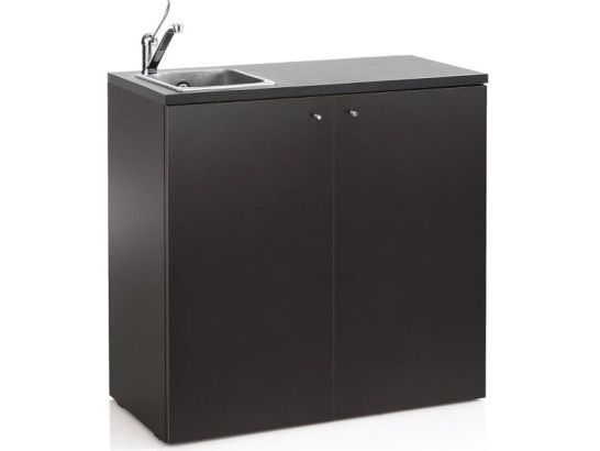 - Lavandino integrato in acciaio inox, resistente e facile da mantenere, ideale per lavaggi frequenti e trattamenti chimici.