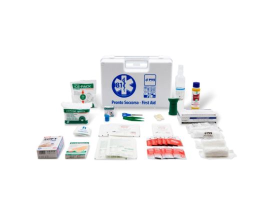 - Contenuto completo con articoli di primo soccorso, tra cui guanti sterili, disinfettante, garze sterili, cerotti e altro