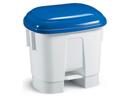 Pattumiera Derby 30 Lt. in polipropilene blu, elegante e robusta, con coperchio ermetico e porta-deodorante. Ideale per uffici e spazi pubblici, mantiene gli ambienti freschi e ordinati.