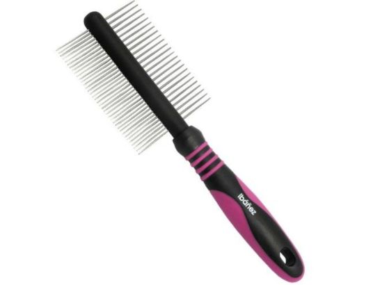 Il pettine doppio Ibáñez con manico in gomma è un accessorio essenziale per la cura e la pettinatura dei capelli. Questo pettine è stato progettato pensando alla comodità e alla facilità d'uso, grazie al suo manico ergonomico in gomma che garantisce una presa comoda e sicura.