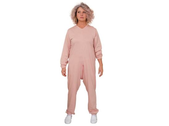 Tuta a maniche lunghe per anziani con cuciture rinforzate. La lunga cerniera si apre fino al cavallo e consente un facile trasporto anche per una persona con difficoltà di movimento.