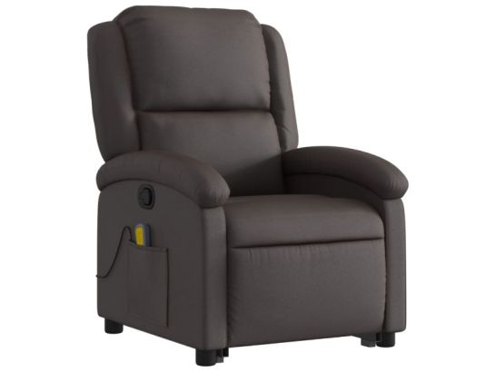 Poltrona a Rialzo Massaggi Reclinabile Alzapersona Marrone Scuro Vera Pelle