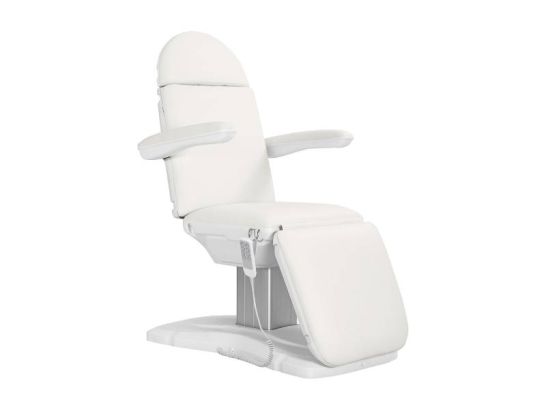 Poltrona elettrica Sillon Eclipse bianca con 4 attuatori per regolazioni precise, design moderno e comfort superiore, ideale per professionisti estetici e medici.