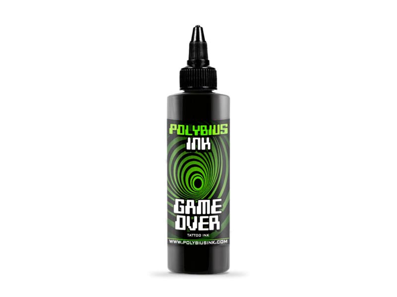 Inchiostro Polybius - Game Over Nero: pigmento nero intenso e resistente, ideale per ogni applicazione artistica. Alta qualità e sicurezza secondo REACH 2023, disponibile in 150ml e 50ml.