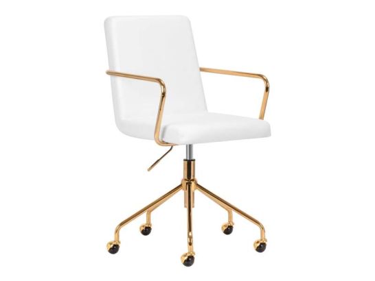 Sedia cosmetica QS-OF211G con rivestimento in pelle sintetica bianco e struttura oro