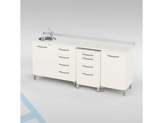 La composizione verrà fornita completa di miscelatore, lavello e cestino porta rifiuti.