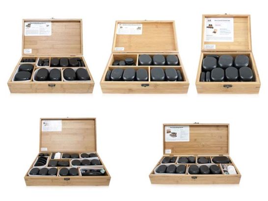 Set di pietre basaltiche modellate a mano per Stone Therapy, in scatola di legno