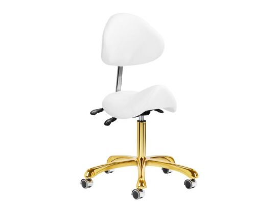 Sgabello ergonomico a sella con schienale regolabile e base girevole da 62 cm, ideale per professionisti che cercano comfort, postura corretta e design moderno.