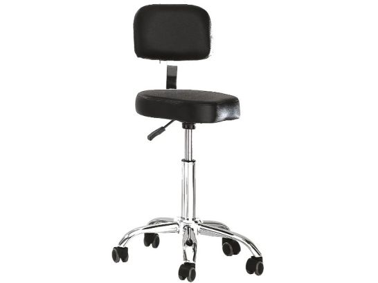 Sgabello parrucchiere regolabile con schienale ergonomico, pompa idraulica e rivestimento in eco pelle per massimo comfort e praticità in salone.
