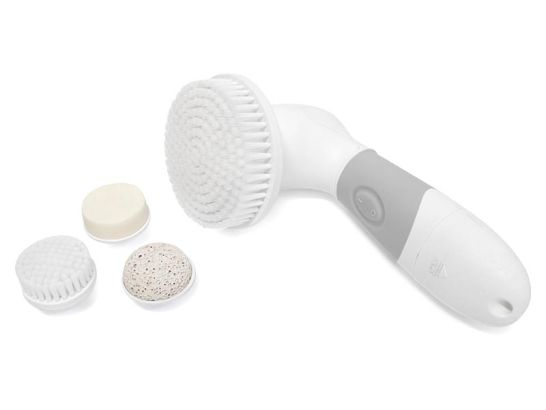 Dispone di 4 testate intercambiabili: spazzola grande, spazzola piccola, pietra pomice e spugna viso.Spazzola piccola per la pulizia del viso: