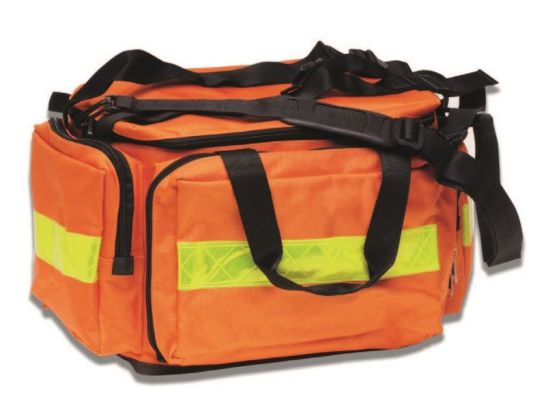 Borsa Pronto Soccorso Trauma in nylon resistente, con comparti interni ed esterni, bande riflettenti e design versatile. Ideale per emergenze e professionisti del soccorso.
