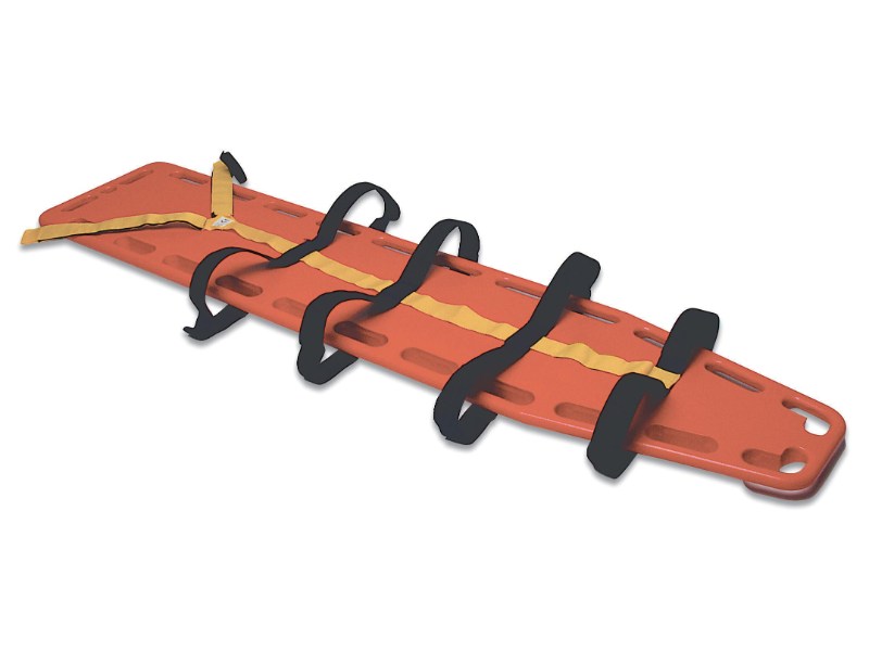Tavola spinale Zoe in polietilene, certificata EN 1865. Sicura, versatile e galleggiante, ideale per emergenze e trasporto pazienti adulti e pediatrici. Colore arancione altamente visibile.