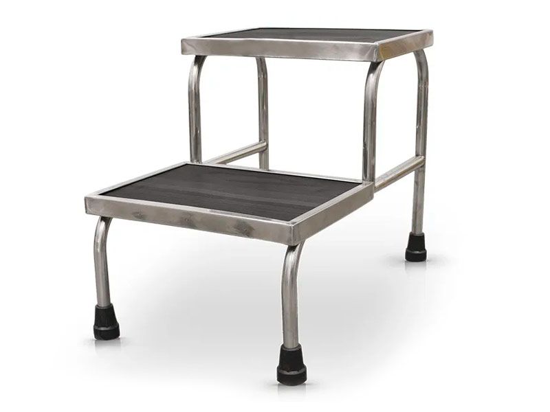 Roestvrijstalen kruk ontworpen met antislip planken voor meer gebruikersveiligheid.