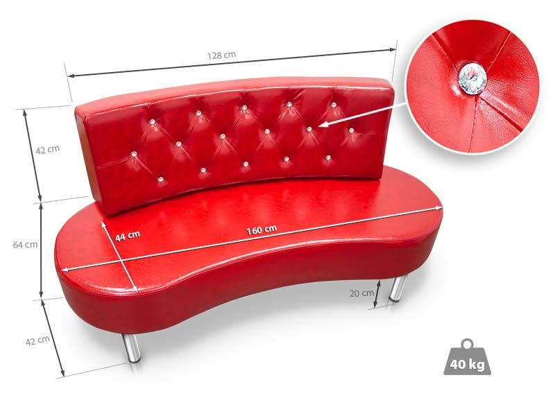 Geweldig ogende en trendy bank ontworpen voor ontvangst- en wachtkamers . Het heeft een rugleuning met gemarkeerd stiksel, ook inclusief knopen als diamanten. Hij is echt comfortabel dankzij de vulling en bekleding, die verkrijgbaar is in verschillende kleuren. Bijna geen onderhoud nodig. Ruim zitgedeelte, voor 2-3 personen . Zijn chromen poten zijn de ideale afwerking voor de afronding van een opvallend en opvallend product.