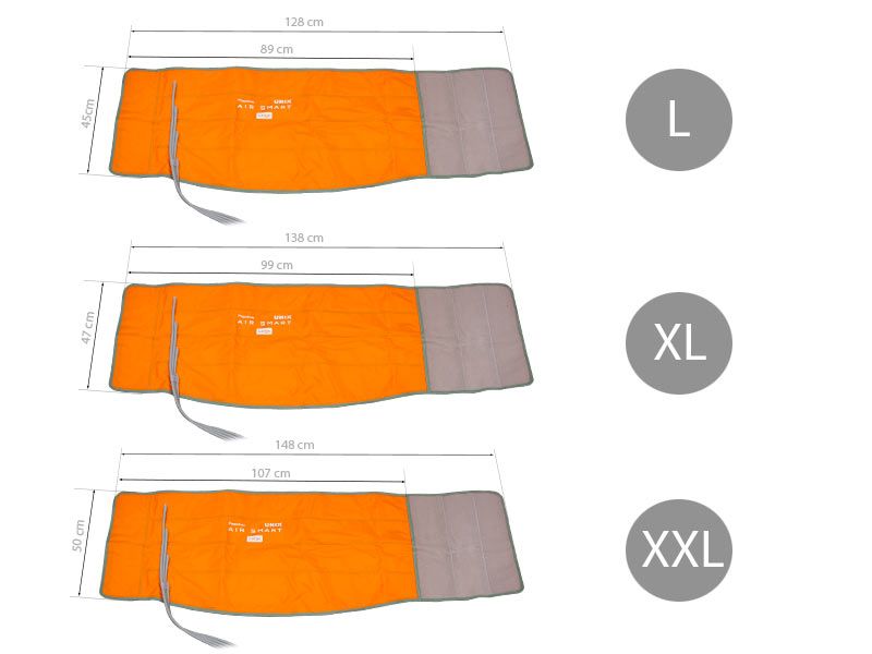 Heupmanchet voor pressotherapie UNIX 8100. Met slangen en klittenbandsluiting voor een perfecte pasvorm. Verkrijgbaar in drie verschillende maten. Oranje kleur met enkele details in grijs. Perfect om de functies van uw pressotherapie-model te vergroten.