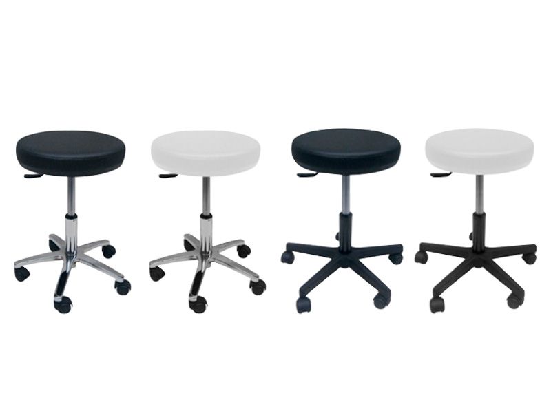 Gestoffeerde gasveer kruk met 5 wielen zonder rugleuning.