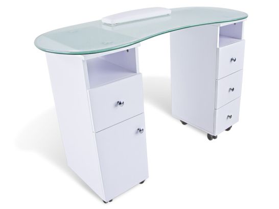 Praktische manicuretafel met 2 lade-units en doorschijnend glazen tafelblad.