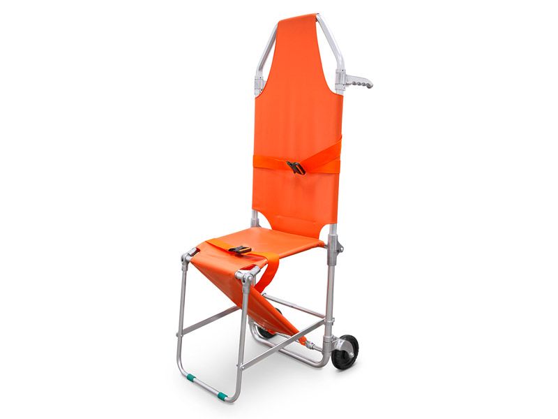 Noodbrancard om te bouwen tot stoel, gemaakt van hoogwaardig materiaal van aluminiumlegering en PVC. Handig voor het vervoeren van patiënten en gewonden in nauwe ruimtes, omdat het is uitgerust met twee veiligheidsgordels en twee wielen om mobiliteit op de grond te vergemakkelijken.