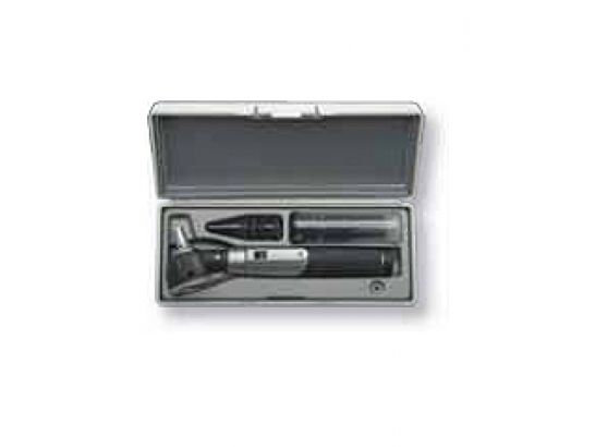 Set Mini 3000, otoscoop, 4 spatels voor permanent gebruik, 10 spatels voor éénmalig gebruik, handgreep op batterijen, in harde kist