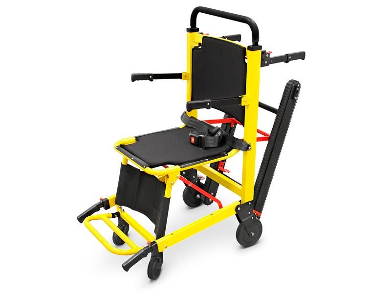 - Het beschikt over een railsysteem om de afdaling en het geleidelijke glijden langs de trap te vergemakkelijken.