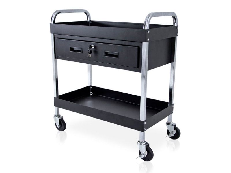 Deze stoere trolley is volledig van metaal en is bestand tegen veelvuldig gebruik en natuurlijke slijtage. Hij is uitgerust met een lade en trays met hoge capaciteit. Ideaal voor tattoostudio's, kapperswinkels en kappers.