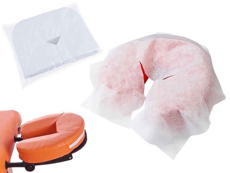 100-stuks verpakking van wegwerpbeschermers voor de hoofdsteunen van de massagetafels. Ze zijn uitgevoerd in het wit, voelen prettig aan en zijn resistent. Dit accessoire is erg handig in fysiotherapieklinieken.