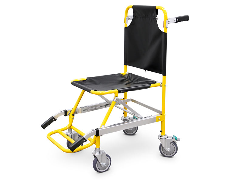 Składane krzesło ewakuacyjne wykonane z wytrzymałego stopu aluminium. Jest to element przeznaczony do pomocy personelowi ratowniczemu w sytuacjach ewakuacyjnych i ratowniczych.