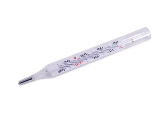 Szklany termometr z galem, ekologiczny, nietoksyczny (nie zawiera rtęci), hypoalergiczny (nie zawiera niklu ani PCV)