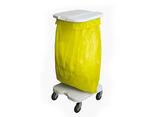 Muito e fácil de utilizar, o nosso carrinho de apoio para sacos com pedal é essencial para recolher e separar a roupa suja em unidades de cuidados.