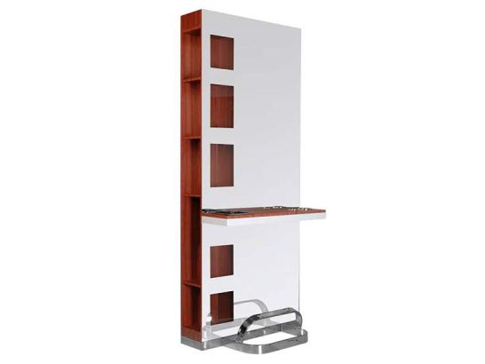 Consola de cabeleireiro B058 Gabbiano com espelho grande e prateleiras espaçosas, design moderno e funcionalidade ideal para salões e barbearias profissionais.