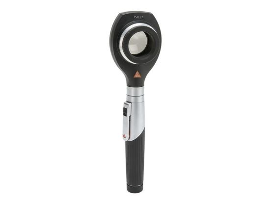 Novo dermatoscópio Heine NC1 com LED HQ e alça mini3000 para exame sem contato.