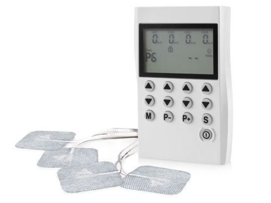 Eletroestimulador profissional TENS e EMS com 4 canais e 50 programas, 45 deles pré-configurados.