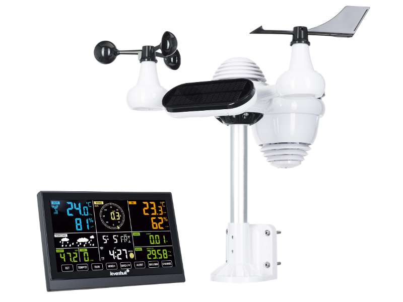 Estação Meteorológica Levenhuk Wezzer PLUS LP150: monitore temperatura, umidade, vento e mais, com Wi-Fi e tela colorida. Ideal para entusiastas e agricultores!