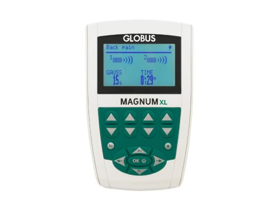 Globus Magnum XL: magnetoterapia avançada com solenoide flexível para alívio de dores, reabilitação e estética, com 26 programas prontos e design ergonômico.